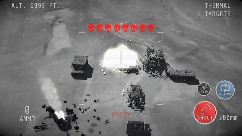 Gunship Operator Mod 3D is a casual arcade shooter where players control a helicopter gunship from a first-person perspective. The core loop involves destroying ground targets across linear levels to earn currency, which is used to purchase upgrades for weapons, armor, and the helicopter itself. The game is developed by VOODOO and follows a typical hyper-casual monetization model with frequent ads and a grind-heavy progression system.