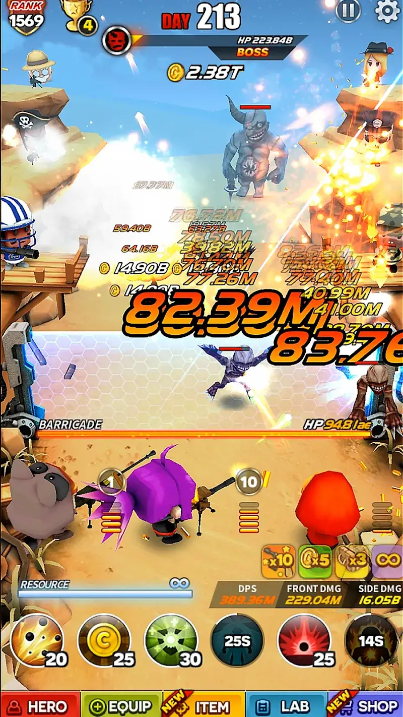 Last Zombie Mod is a tactical tower defense shooter for Android. Players command a squad of up to nine mercenaries, positioning them along blocked roads and urban terrain to defend against waves of mutated, weapon-wielding zombies. The core loop involves managing hero placement, weapon upgrades, and active skills across hundreds of consecutive days of combat in varied environments. The mod version alters the game's economy.
