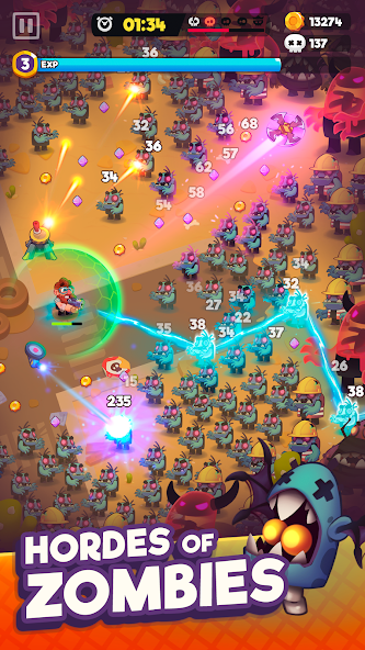 Zombastic Mod is a top-down survival shooter with roguelike progression mechanics. Players navigate procedurally generated levels within an abandoned supermarket, fighting off waves of zombies, collecting weapons and upgrades, and facing boss encounters. The core loop involves short, intense runs where death resets progress but unlocks permanent upgrades. This mod APK targets players who want to bypass the game's grind and ad-supported economy.